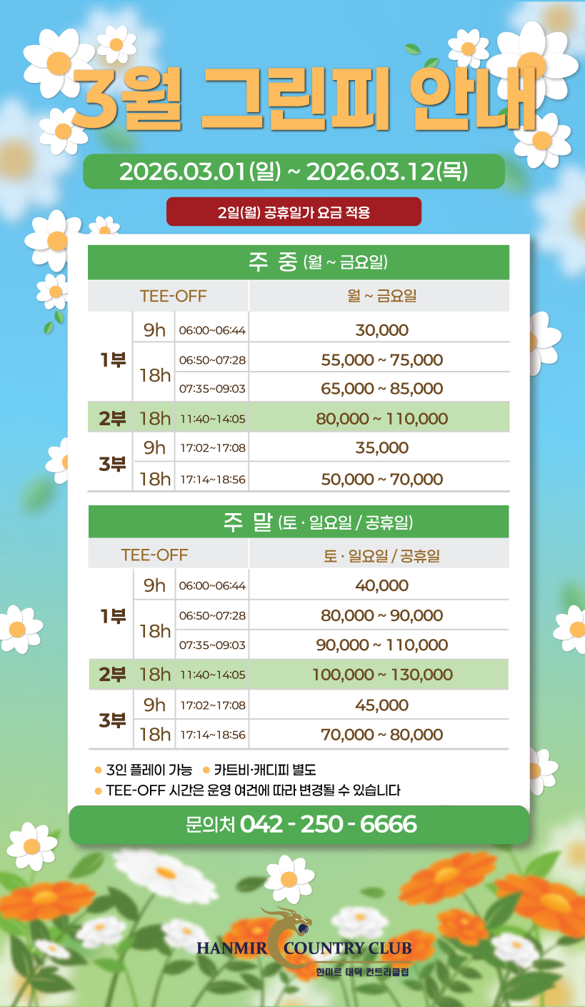 3월 그린피 안내[3/1~3/13]